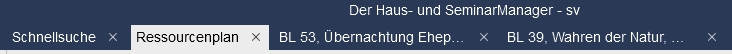 - Bei mehreren geöffneten Fenstern kann über Tabs am oberen Bildschirmrand zwischen den Masken gewechselt werden (wie im Haus- und SeminarManager).