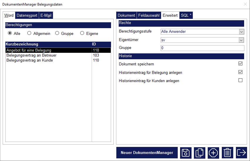Einstellungen im DokumentenManager#