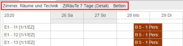 Es wird empfohlen, sowohl eine Ansicht auf Zimmer-, als auch eine Ansicht auf Bettenebene anzulegen und mit beiden Ansichten zu arbeiten.
