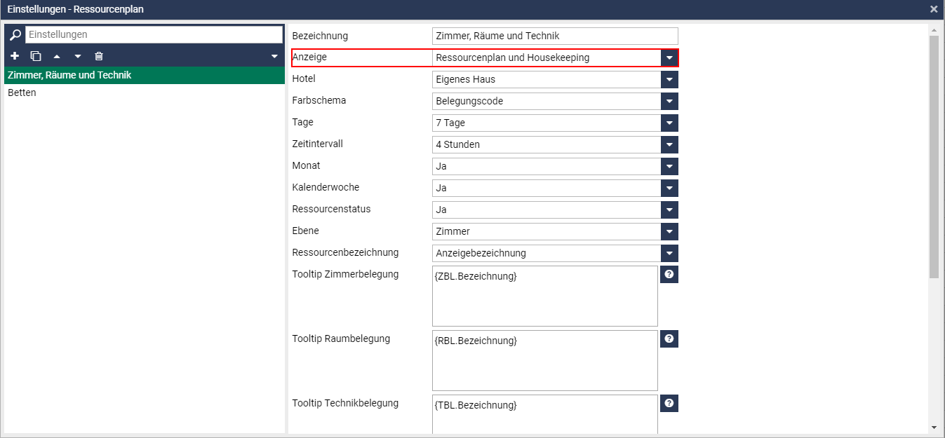Nach dieser Einrichtung können Sie der Clean & Repair-App spezielle Zimmer- bzw. Ressourcenansichten zur Verfügung stellen. Das Erstellen einer solchen Ansicht funktioniert analog zum Erstellen einer Ansicht für den Ressourcenplan. Eine detaillierte Beschreibung hierzu finden Sie in der Anleitung zur Einrichtung des Ressourcenplans.